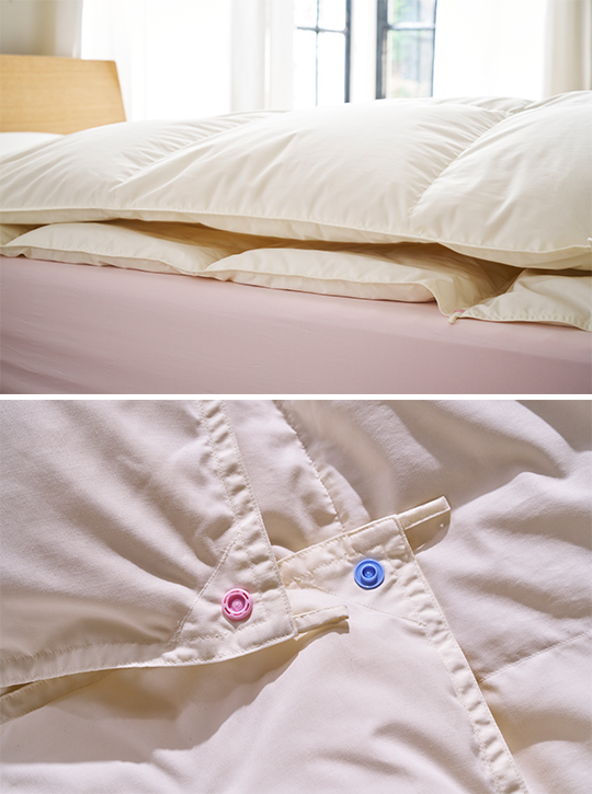 相掛けと肌掛け、サイズが違う2枚仕立てだから、体の動きや体型に沿ってフィット。しなやかな寝心地です。